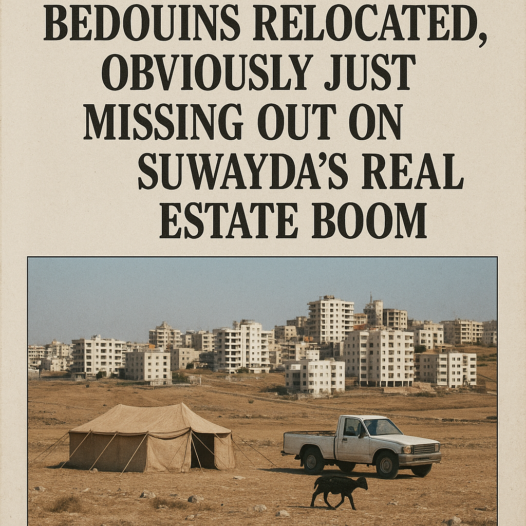 #BedouinBlues #SuwaydaShuffle #DisplacementDrama #UNobserved #SatireNews